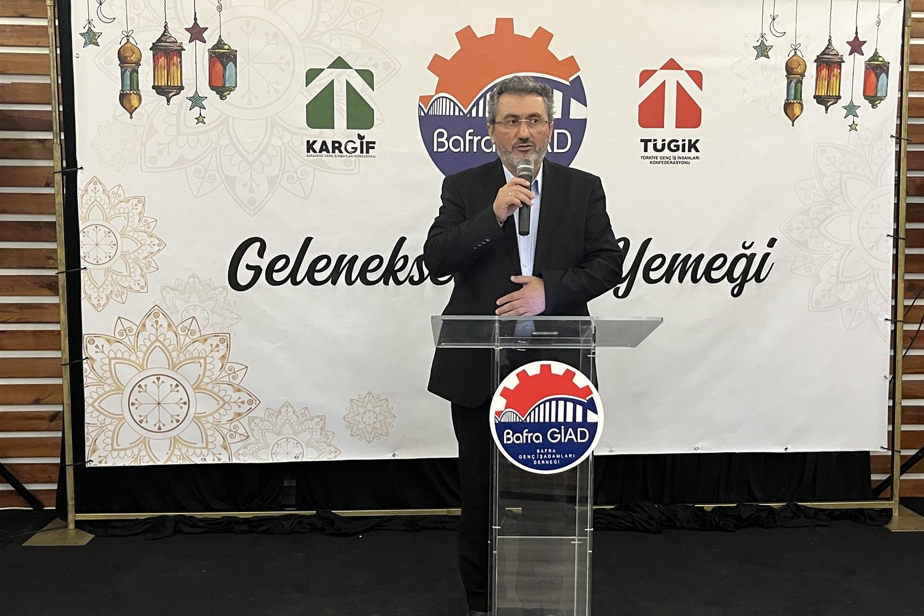 Bafra Genç İş İnsanları Derneği ( BAFRA GİAD) tarafından organize edilen iftar yemeği Favori event Toplantı ve davet merkezinde gerçekleştirildi. Bafra Kaymakamı Cevdet Ertürkmen, Prof. Dr. Mehmet Okuyan, Ondokuz Mayıs Üniversitesi İlahiyat Fakültesi